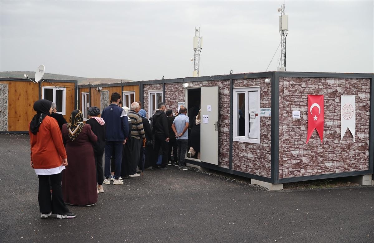 Burada vatandaşlar, hasarsız olan okullarda ve hasarlı okulların bahçelerine kurulan konteynerlerde oy vermek için yoğunluk oluşturdu.