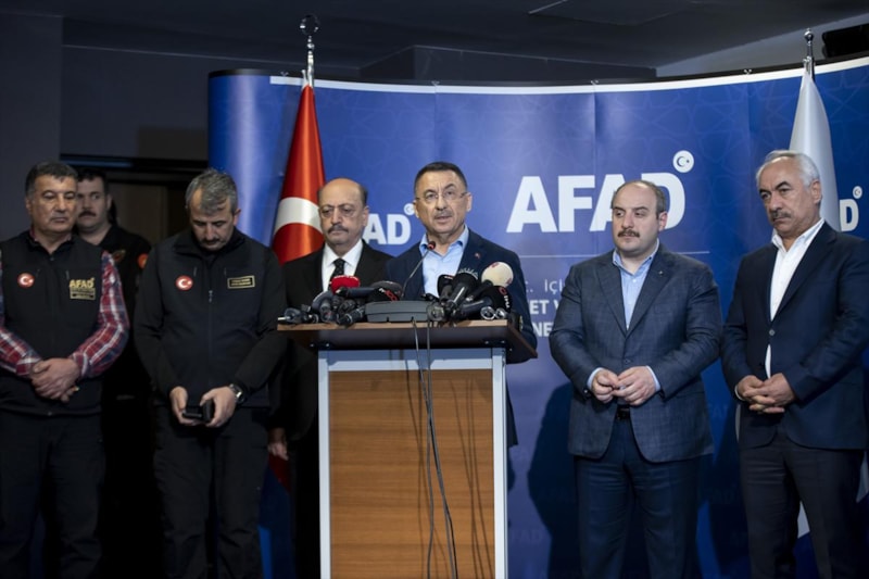 Cumhurbaşkanı Yardımcısı Fuat Oktay, 10 ilde şiddetli şekilde hissedilen ve çok sayıda vatandaşımızın hayatını kaybettiği deprem bölgesinden son duruma ilişkin bilgiler verdi.