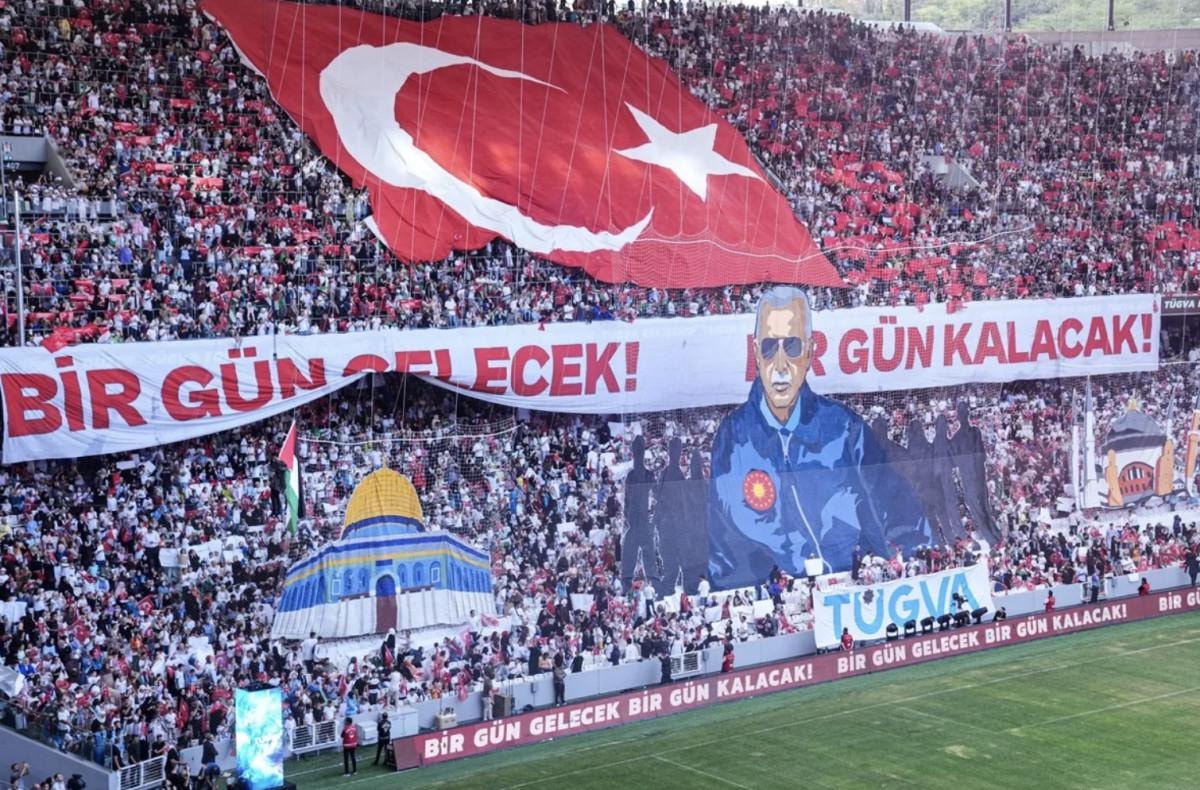 Cumhurbaşkanı Erdoğan'ı dinleyen ve Gazze'yi unutmayan gençlerin tekbir getirmesi, gazete tarafından "ayıp" bir durum olarak verildi.