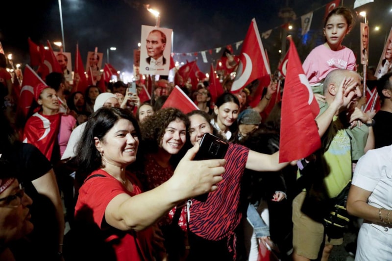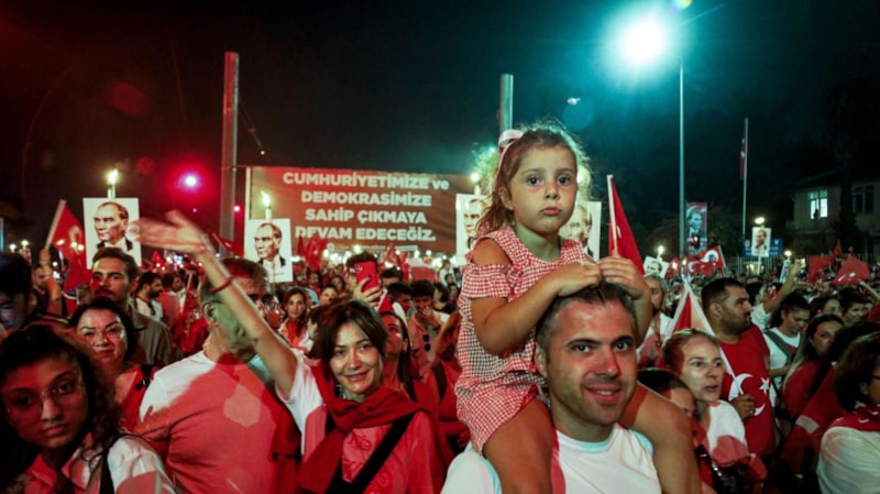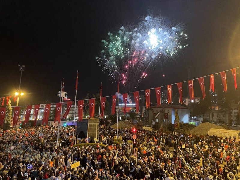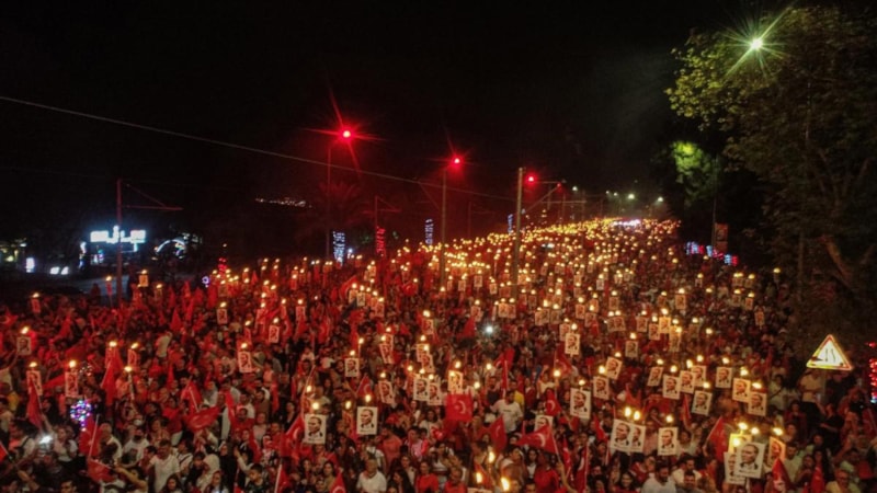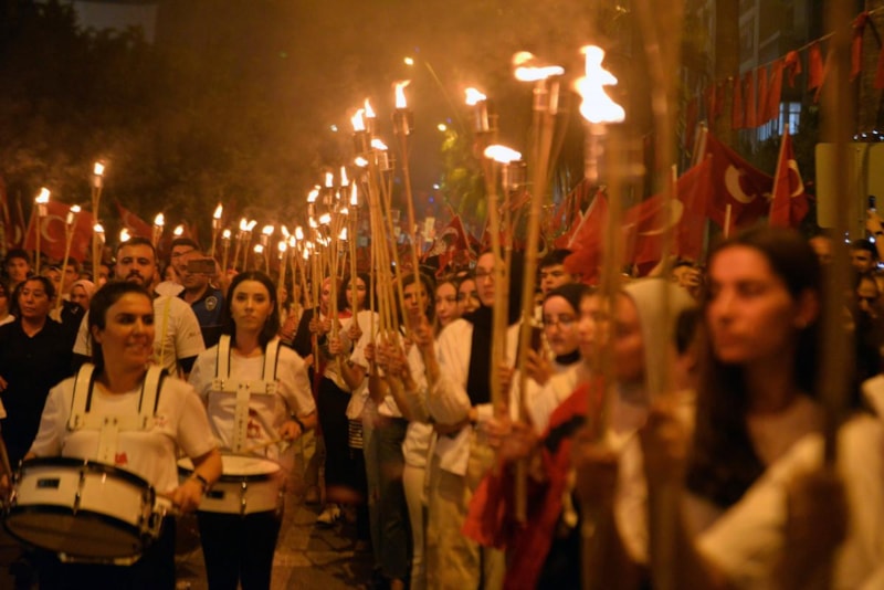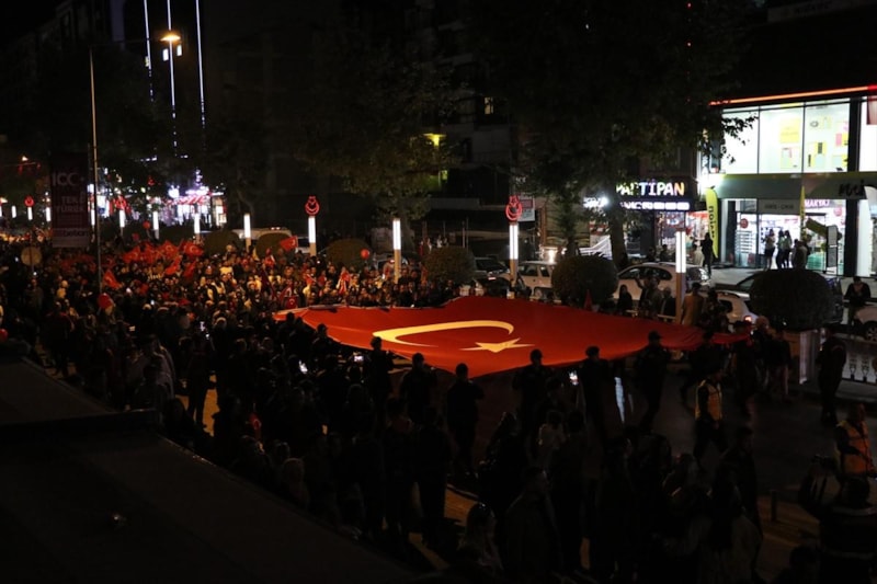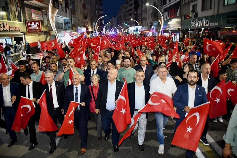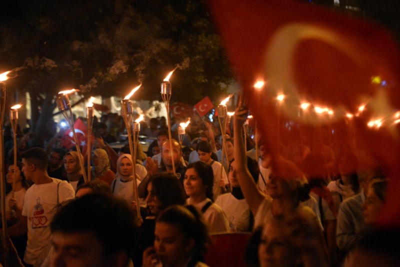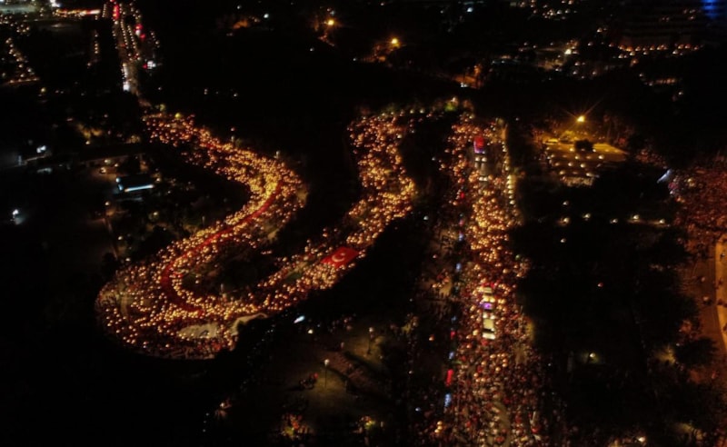 Yurdun dört bir yanından vatandaşlar, fener alayı yürüyüşü gerçekleştiriyor..