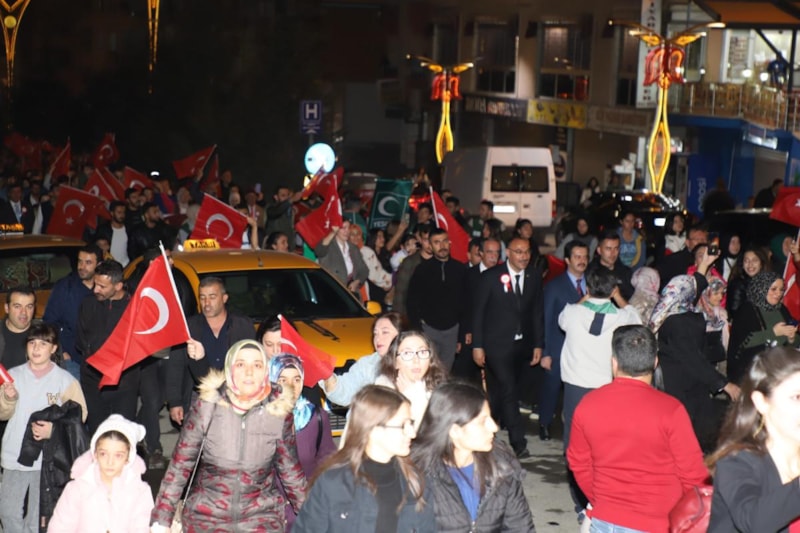 Niğde'de Cumhuriyet Bayramı'nın 100. yılı dolayısıyla fener alayı düzenlendi.