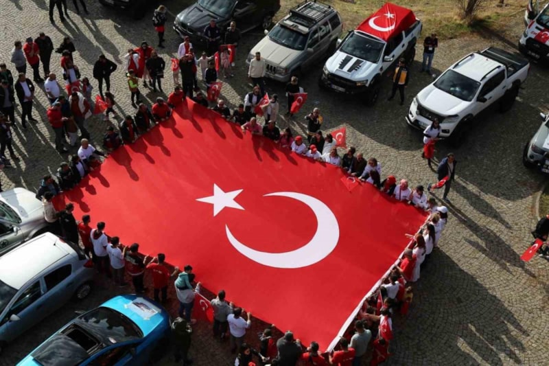 Türk bayrakları gökyüzünde