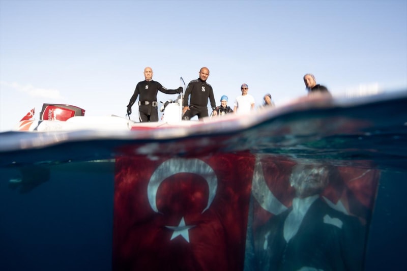 9 Eylül vapuru batığında Türk bayrağı açıldı