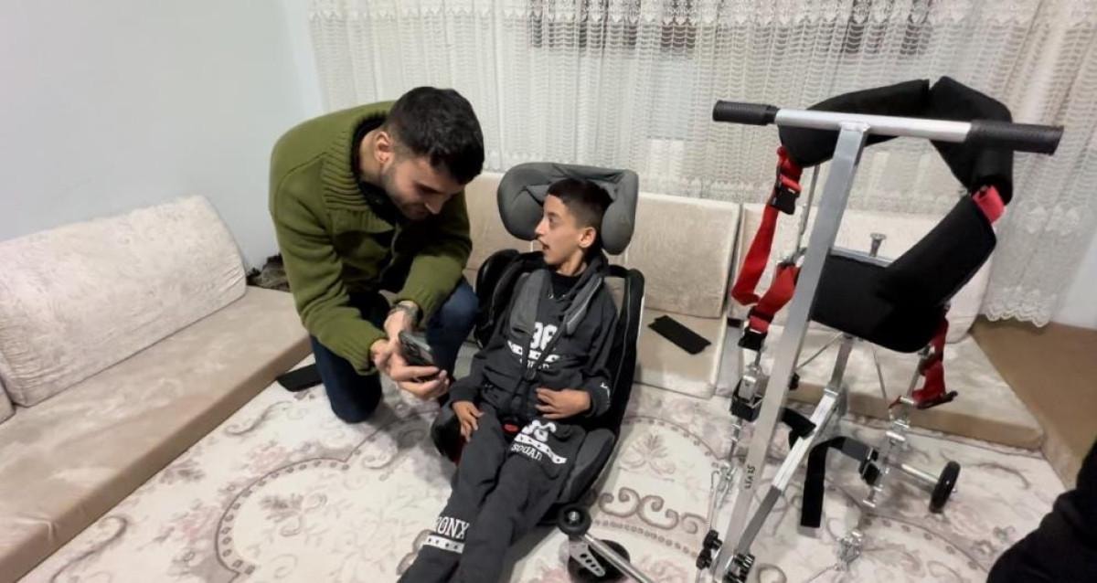 Özel olarak imal ettirdiği engelli ayakta durma aracını Serebral Palsi hastası Ahmet Budak'a hediye etti.