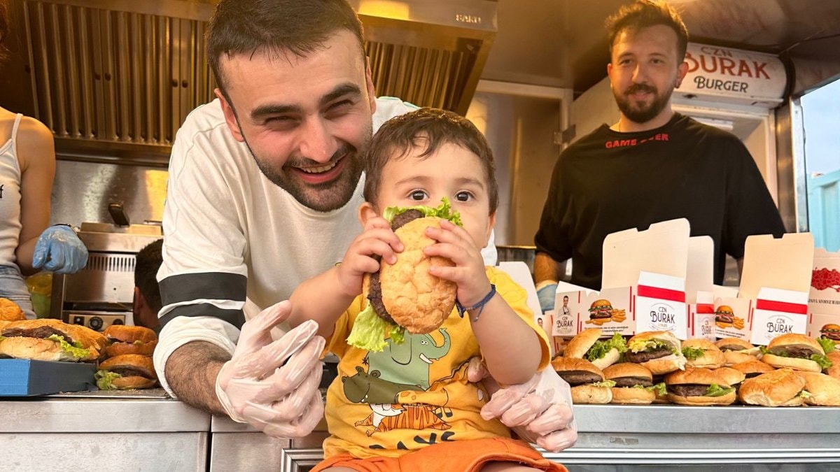 Kurban Bayramı için hazırlıklara başlayan CZN Burak, önce dana kesti sonra da çocuklar için hamburger hazırladı.