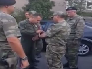 Görüntülerde, astsubaylar tarafından kelepçelenen bir FETÖ'cü albayın "Mümkün olursa bizi rütbemize uygun kişiler tutuklarsa, sizler kelepçeleyin. Astsubaya yaptırmayın." dediği duyuluyor.