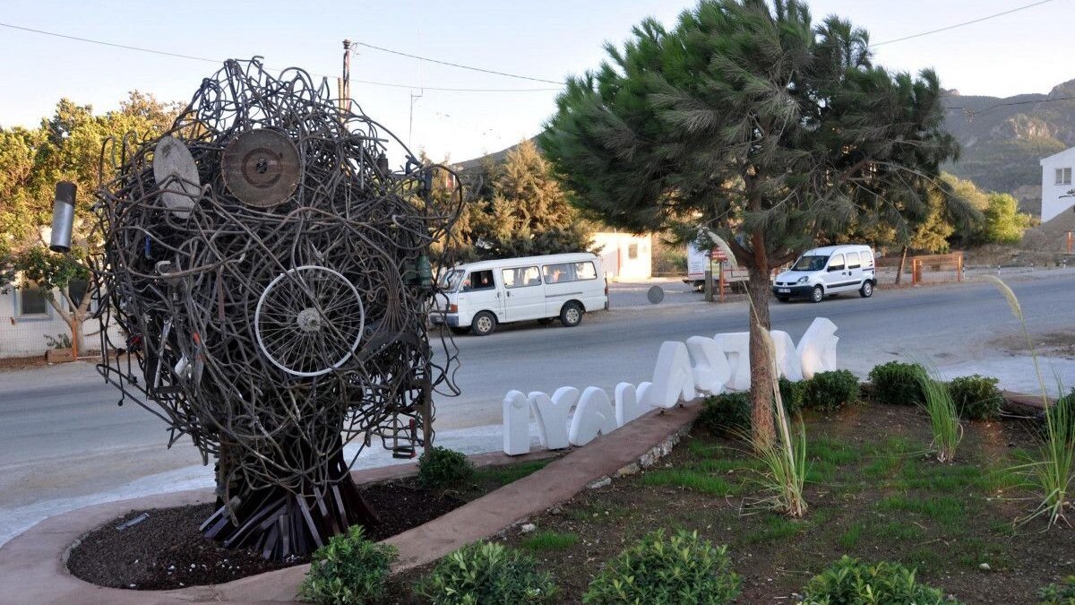 Muğla'nın Datça Sanayi Sitesi girişine konulan 'Sanayi Ağacı' heykelinin açılışı için tören düzenlendi.