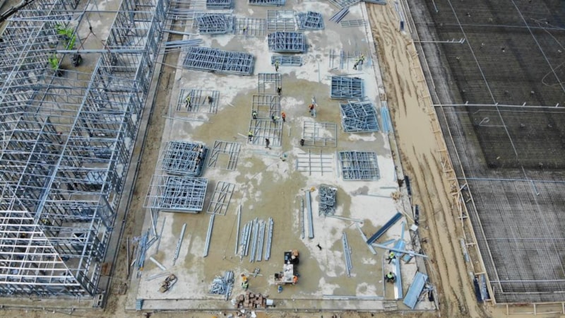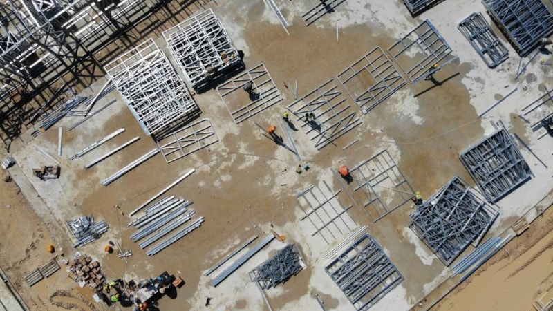 Zemin çalışmalarının ardından montalama işlemine geçen işçiler, çalışmaya 1 Mayıs Emek ve Dayanışma Günü’nde de ara vermedi.