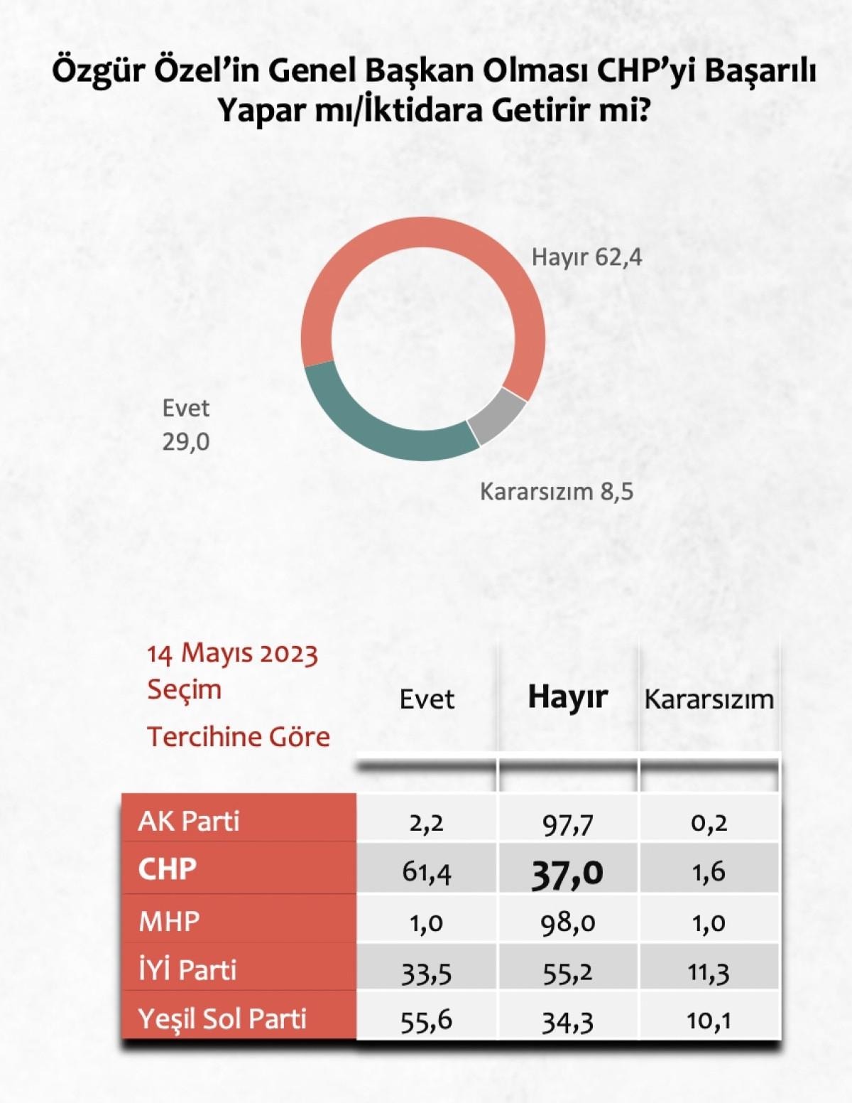 Özel'in CHP'nin yeni genel başkanı olmasının ardından Areda Survey, konuyla ilgili dikkat çeken bir anket çalışması yaptı.