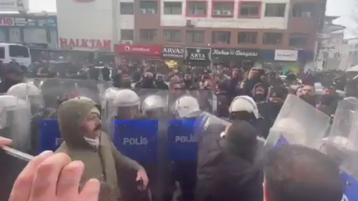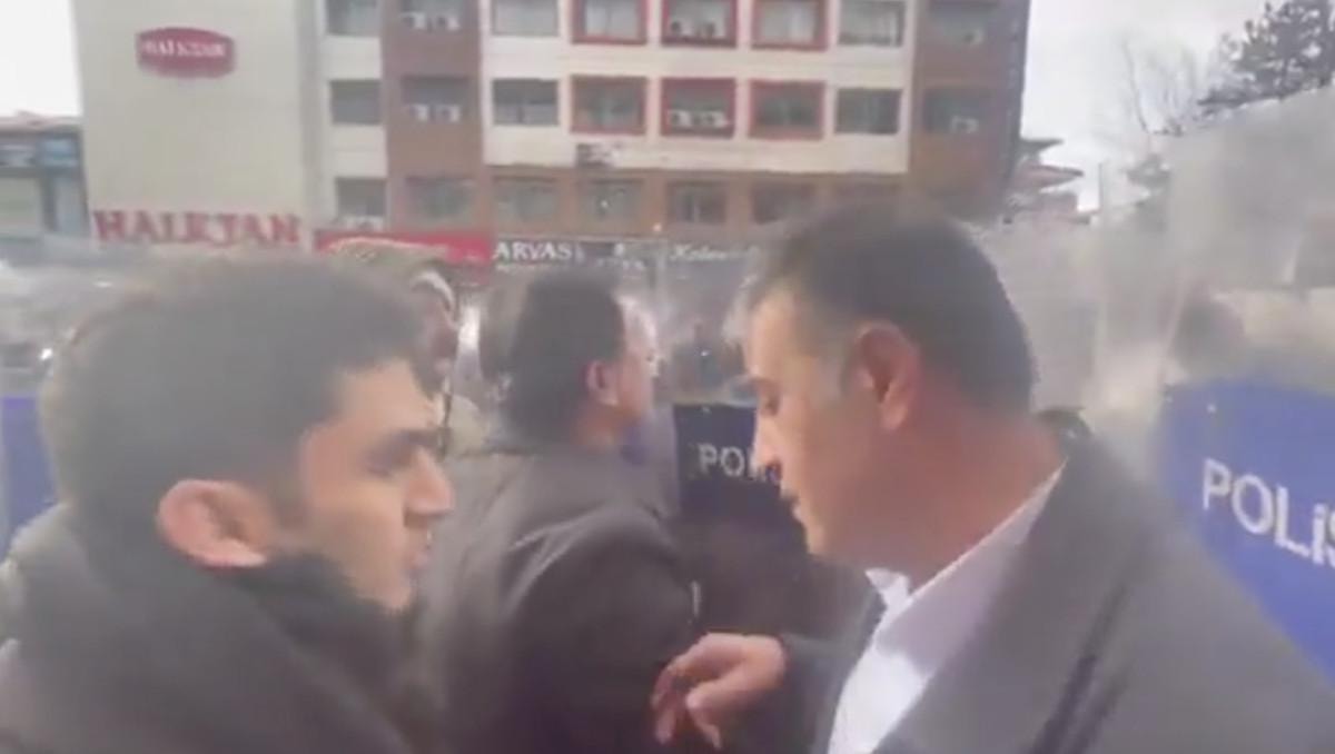 DEM Van Milletvekili Mahmut Dindar, Valilik tarafından düzenlemek istedikleri yürüyüşe izin verilmemesi sonrası polislerin kalkanlarını kırdı.