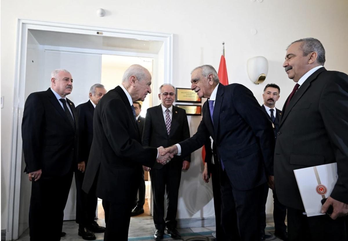 İstanbul Milletvekili Sırrı Süreyya Önder ile Van Milletvekili Pervin Buldan ve yine DEM Parti'den Ahmet Türk'ten oluşan DEM Parti heyeti, dün TBMM Başkanı Numan Kurtulmuş ve MHP Genel Başkanı Devlet Bahçeli ile bir görüşme gerçekleştirdi.