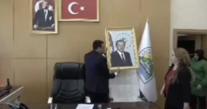 DEM Partili Tatvan Belediye Eş Başkanı Erol, mazbatasını alıp göreve başladığı gün Cumhurbaşkanı Erdoğan’ın fotoğrafını makam odasından indirmişti.