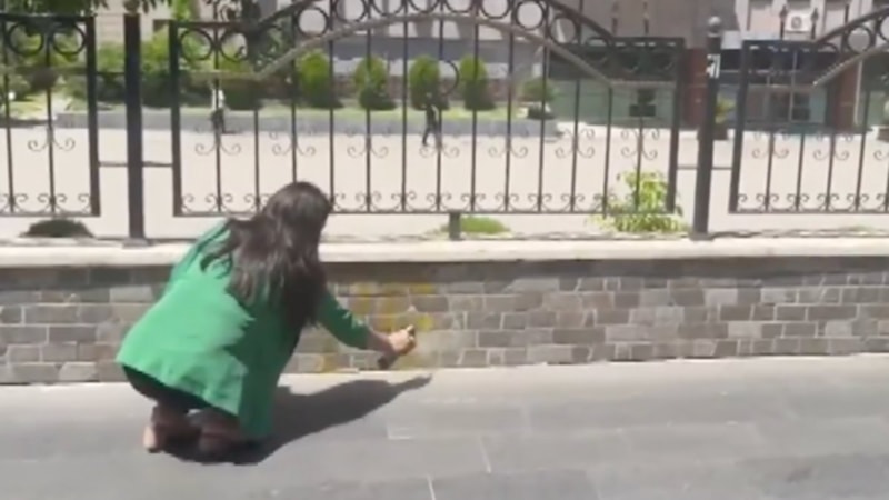 Bunu hazmedemeyen DEM Partili vekil Zeynep Oduncu, eline sprey boya alarak Batman Valiliği'ne geldi.