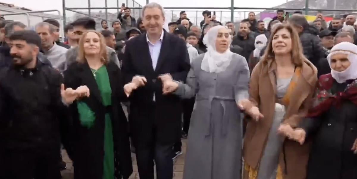 Bakırhan ve beraberindeki milletvekillerinin Nevruz ateşi yakmasının ardından katılımcılar, şarkılar eşliğinde halay çekti.