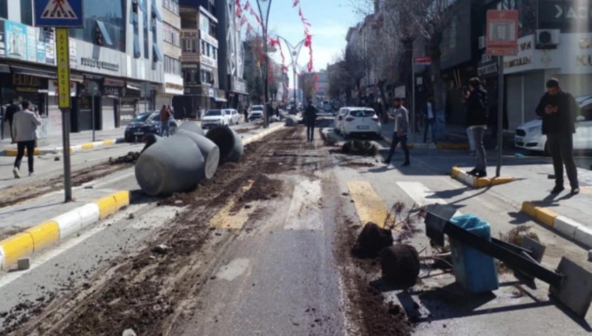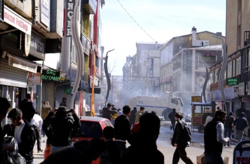 DEM Parti Van İl Başkanlığı önünde toplanan kalabalık, polisin uyarılarına rağmen Cumhuriyet Caddesi'ne yürümek isterken müdahale başladı.