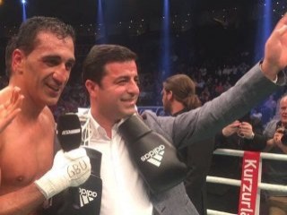 HDP Eşbaskanı Selahattin Demirtaş, eşi Başak Demirtaş ve HDP Tunceli Milletvekili Alican Önlü'nün katılımıyla gerçekleşen "Kıtalararası Orta Sıklet Şampiyonluk" maçında Demirtaş'ın desteklediği boksör İsmail Özen şampiyon oldu.