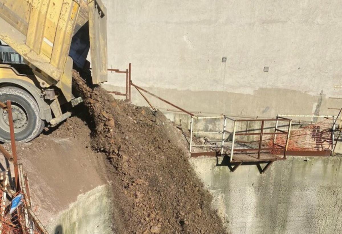 İstanbul Sultanbeyli’deki metro şaftı, İstanbul Büyükşehir Belediyesi’ne ait hafriyat kamyonlarıyla moloz dökülerek kapatılırken görüntülendi.