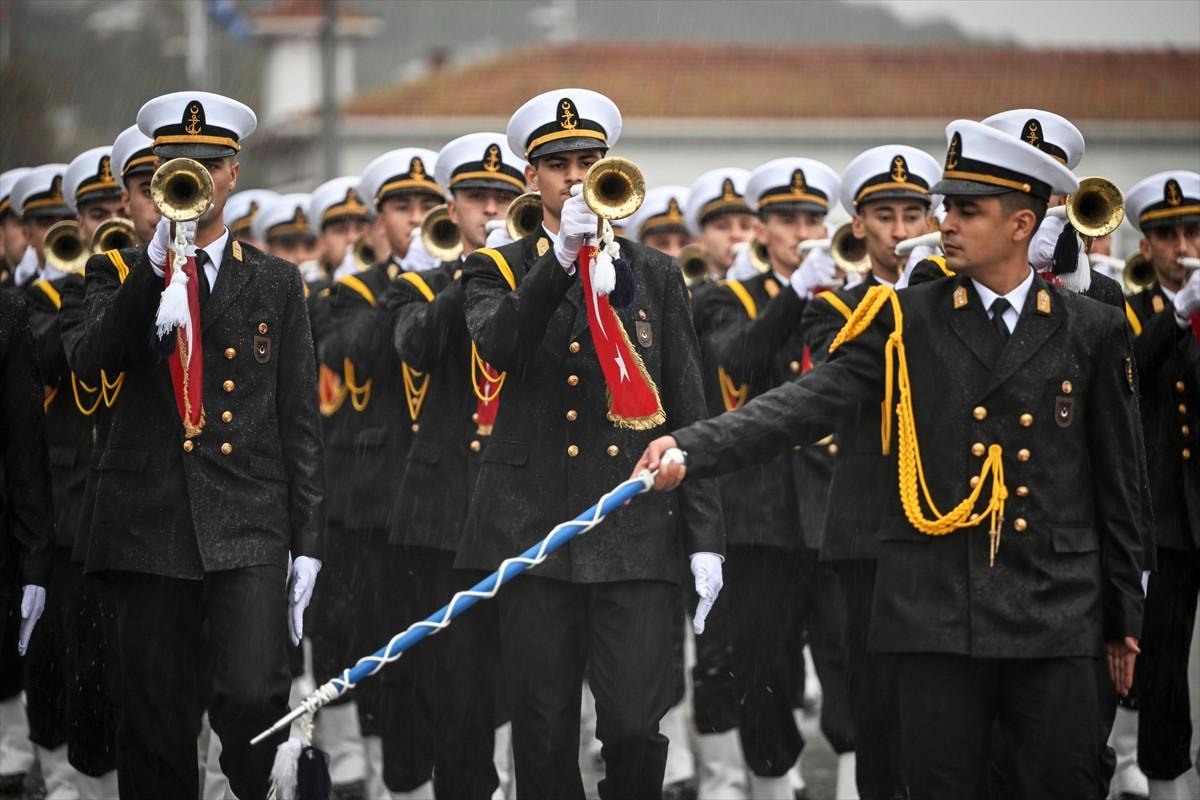 Yoğun yağış altında gerçekleşen törende, ilk olarak öğrenci alayı daha sonra da Deniz Kuvvetleri Komutanı Oramiral Tatlıoğlu'nun devre arkadaşlarının bulunduğu emekli subaylardan oluşan manga geçiş yaptı.