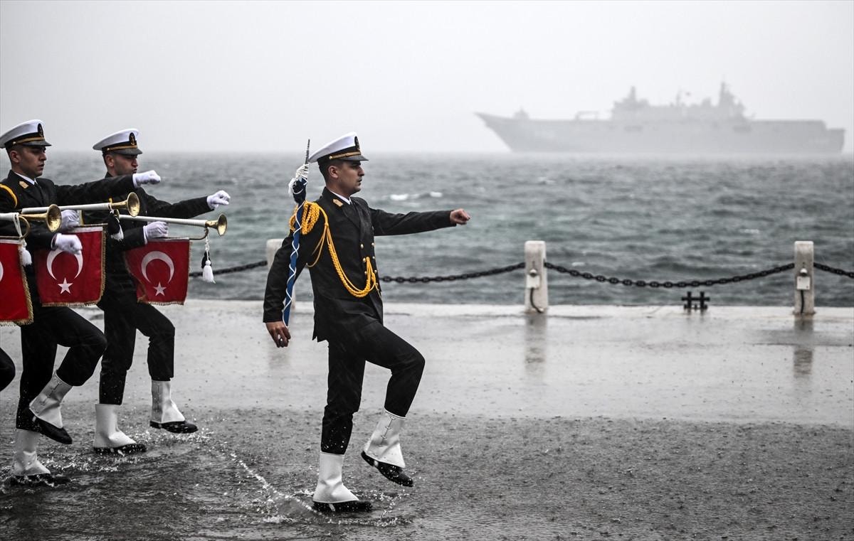Deniz Kuvvetleri Komutanlığına ait helikopter ve su üstü unsurlarının eşlik ettiği özel vapura, Heybeliada açıklarında TCG Anadolu personeli tarafından denizcilere özgü "çimariva" adı verilen selamlama yapıldı.