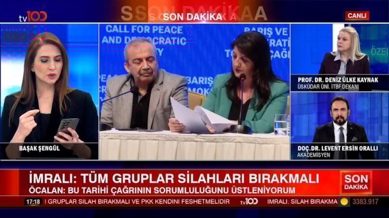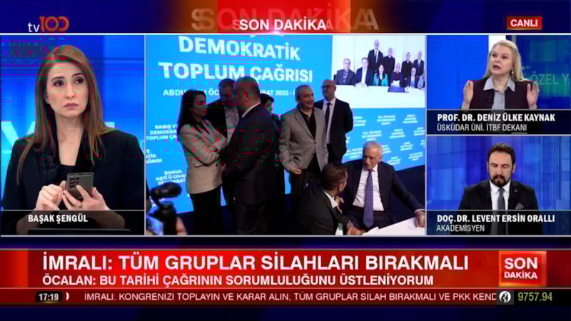 tv100 özel yayınında konuşan Prof. Dr. Deniz Ülke Kaynak, İmralı'nın mesajını değerlendirerek, “Bütün metni bir özeleştiri metni olarak okudum. Devletle ilgili daha önceki eleştirilere girmiyor. ‘200 yıldır bu topraklar üzerinde oyun oynanıyor’ diyor” ifadelerinde bulundu.