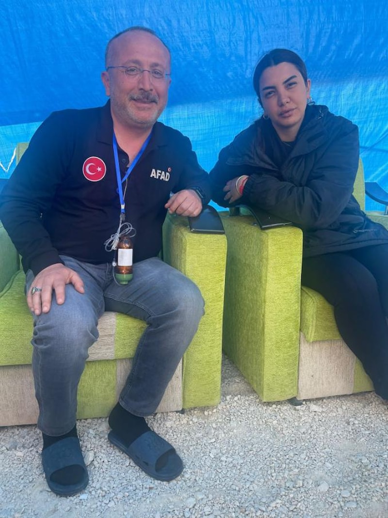 Fotoğraftaki kişi Denizli Valisi Ali Fuat Atik. Kanser hastası. Depreme kadar kimse bilmiyormuş. Vali, Hatay’a koordinatör vali olarak görevlendiriliyor. Her şey ortaya çıkıyor. Boynuna taktığı kemoterapi şişesiyle çalışıyor."