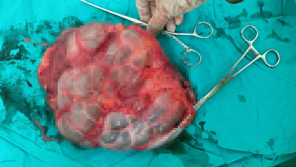 Op. Dr. Süleyman Kayık, “Uzun yıllardan beri karnında şişlik ve ara ara ağrı olması gibi şikayetlerle hasta hastanemize başvurdu. Yapılan muayene ve tetkiklerinde sol böbreğin içinde çok sayıda taş ve böbrek boyutlarının 20-25 cm büyüdüğü ve içi idrar dolu bir kese haline geldiğini tespit ettik. Sol böbrek fonksiyon görmüyordu ve alınmasına karar verdik. Yapılan ameliyat ile hastanın sol böbreği, içindeki taşlarla birlikte alındı.” dedi.