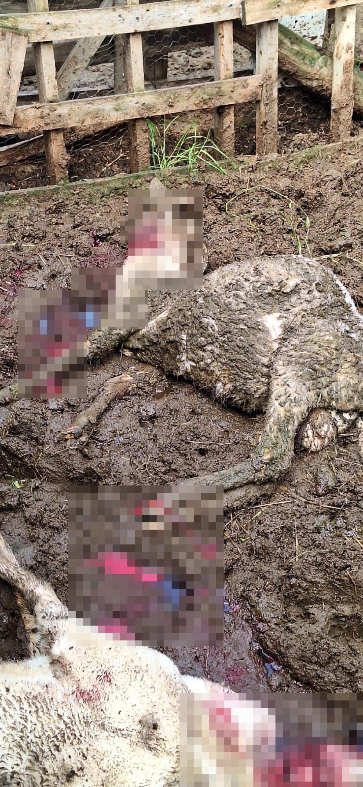 Akbay’ın kurbanlık kuzularından 6’sını boğarak öldüren kurt, bazı koyunları da parçalayarak telef etti.