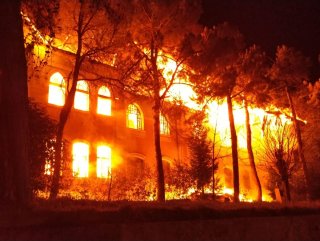 Ekiplerin müdahalesine rağmen tarihi okul, harabeye döndü.