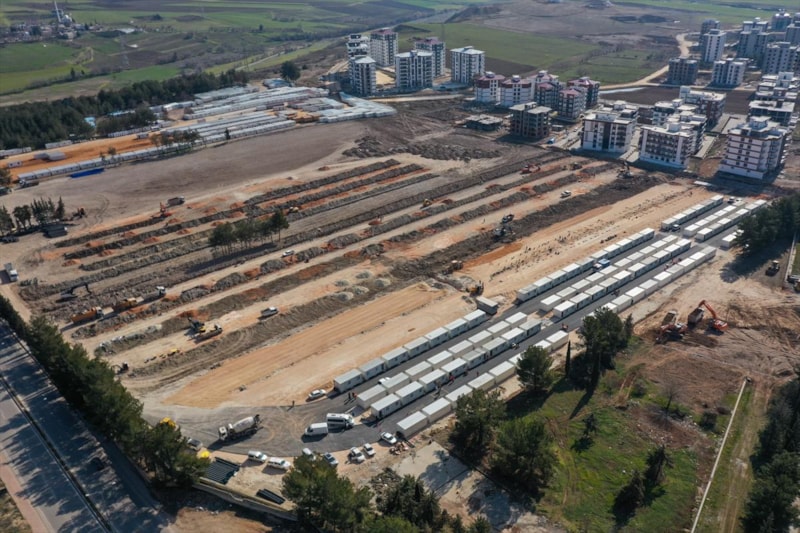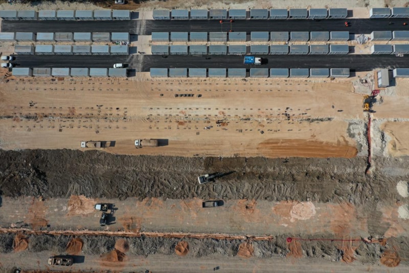 Konteynerlerimizi artık yerleştirmeye başladık. Burada yaklaşık 8 bin 500, 9 bin kişilik bir konteyner kent kuruyoruz. Arkadaşlarımızla yoğun bir şekilde çalışıyoruz, makinelerimizi artırdık. Artık hızımızı da artırdığımız için her geçen gün 100-150 konteyneri yerine koyacak şekilde bir hıza ulaştık.
