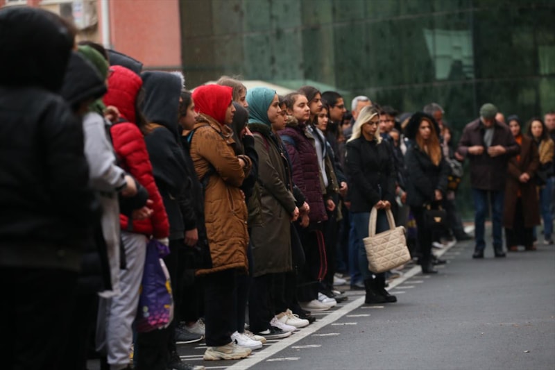 Gaziantep Lisesi'nde öğrenciler, saygı duruşu ve İstiklal Marşı'nın okunmasının ardından sınıflara alındı.