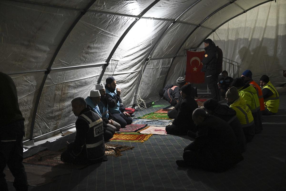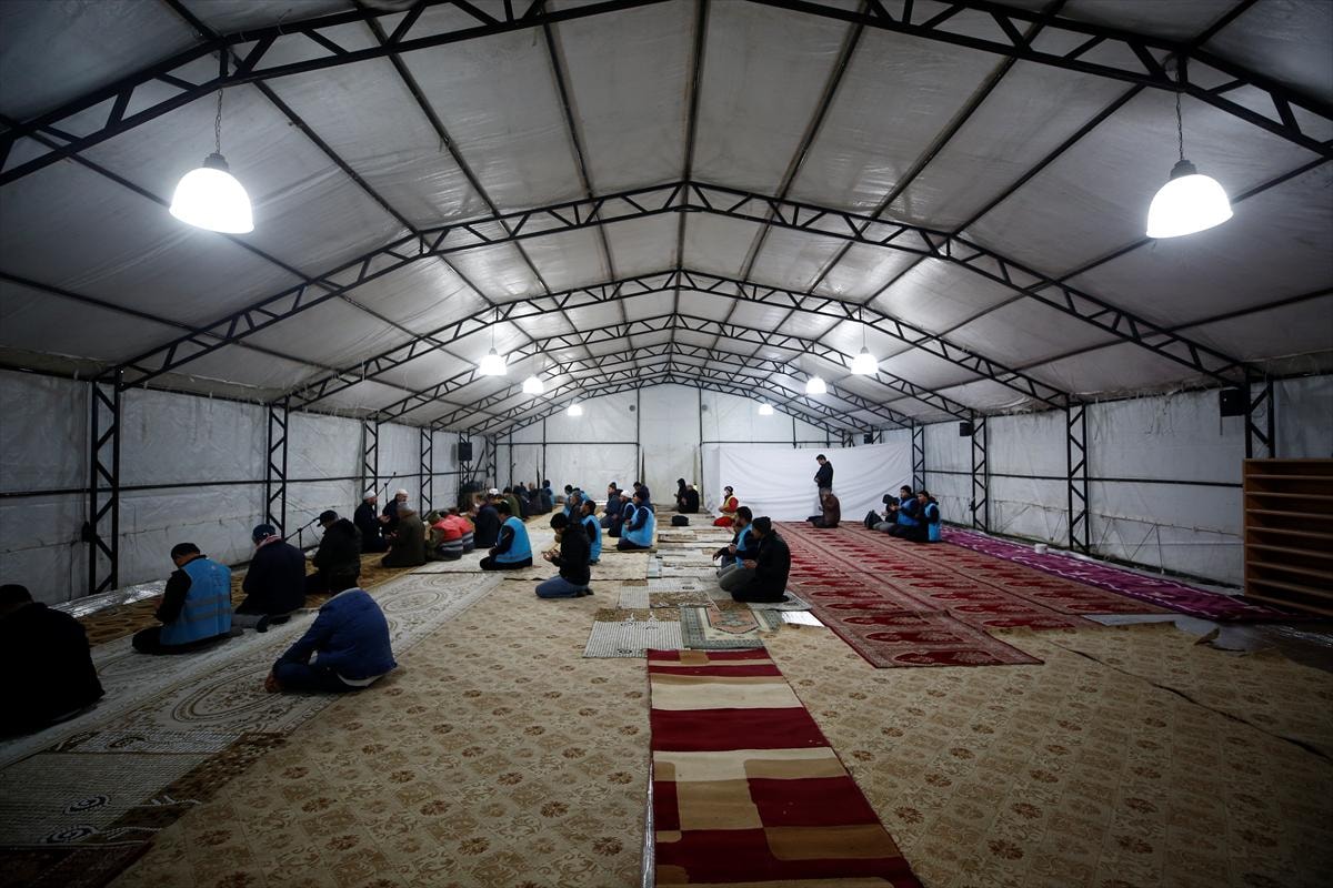 Antakya ilçesinin çeşitli noktalarına kurulan çadır mescitlerde, depremlerde hayatı kaybedenler için dua edilerek, Kur'an-ı Kerim okundu.