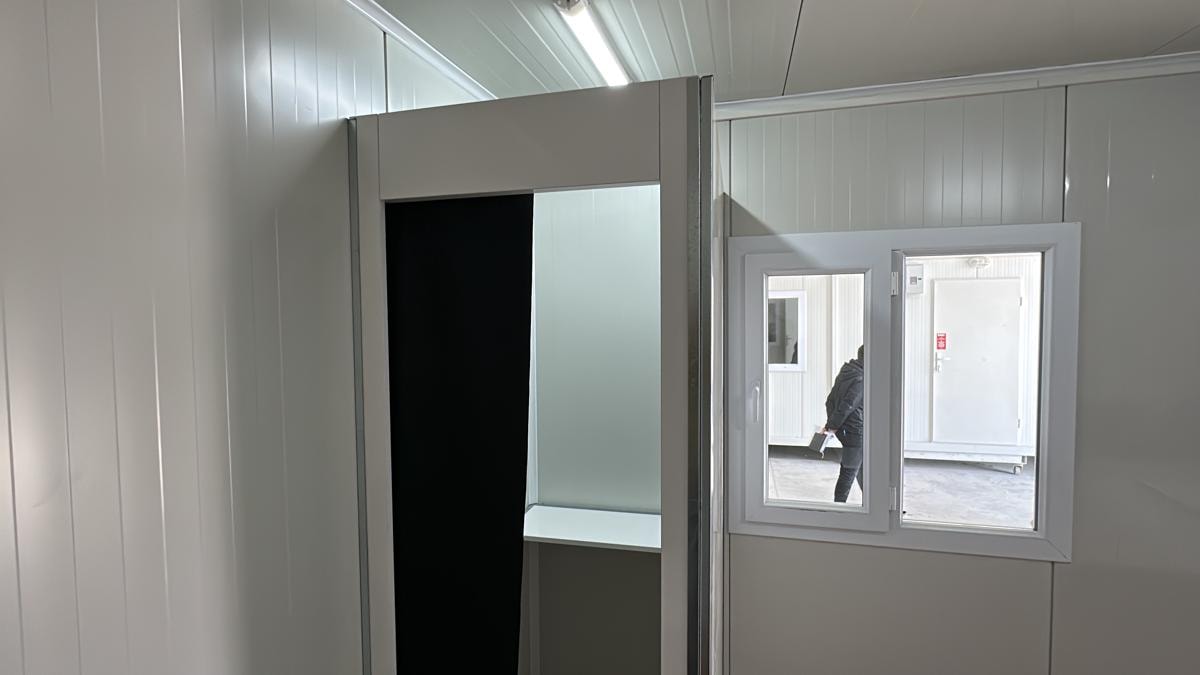 Seçim konteynerlerinde aynı anda 2 vatandaşımızın oy kullanabilecek kabinler bulunuyor. Bir tarafı perdeyle kapatılıyor. Diğer kısımlar ise sabit olarak yapıldı. Sandık görevlilerinin rahat bir şekilde vatandaşlar ile iletişim kurabileceği masa ve sandalyeler mevcut. Ürettiğimiz seçim konteynerlerimiz ihtiyacı olan bölgelere AFAD koordinasyonunda gönderilecek. Seçimden sonra bu konteynerler orada farklı hizmetler için kullanılmaya devam edilecek.