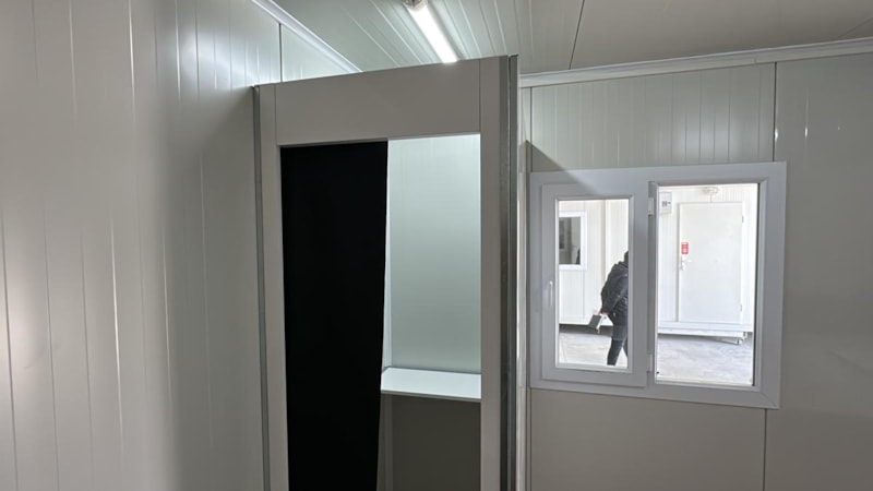 Deprem bölgelerindeki vatandaşların daha sağlıklı oy kullanabilmesi için tasarlanan konteynerler da 2 kabin bulunuyor.