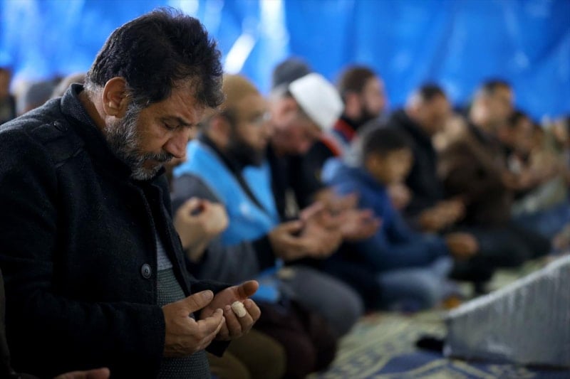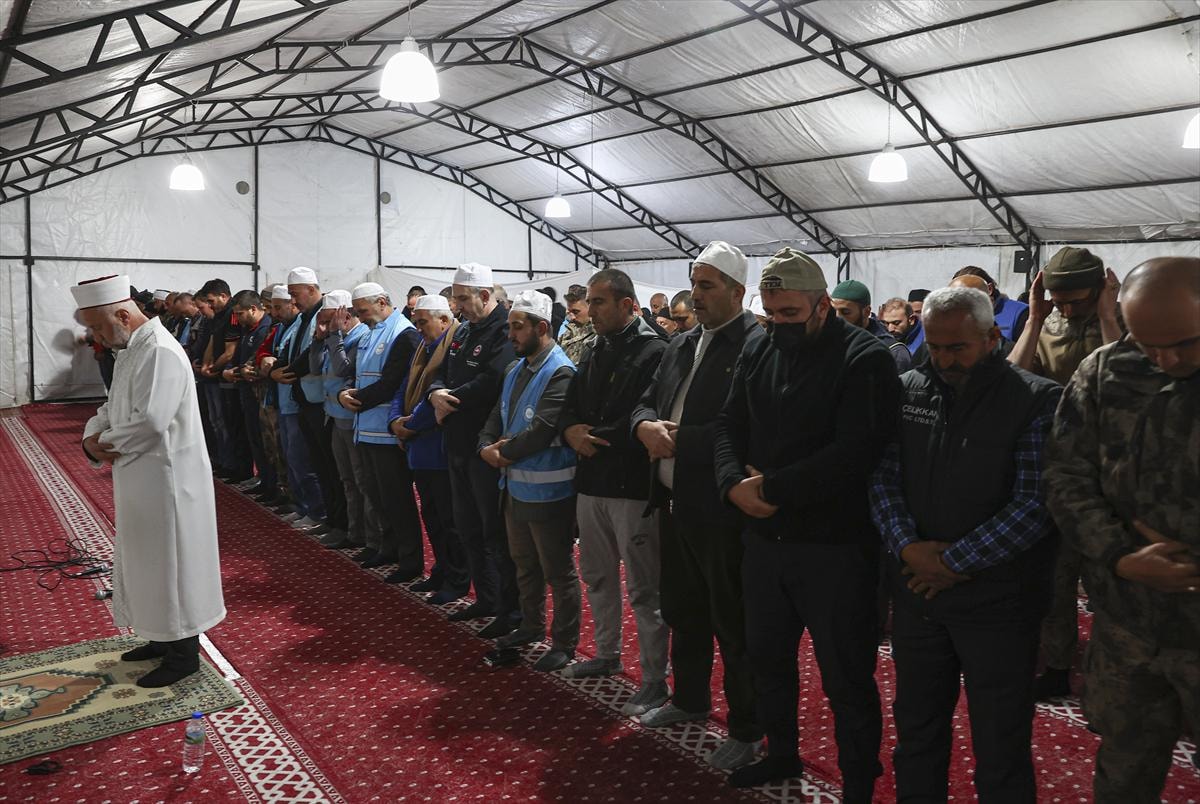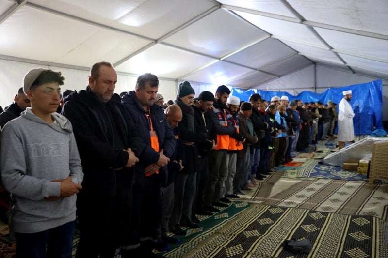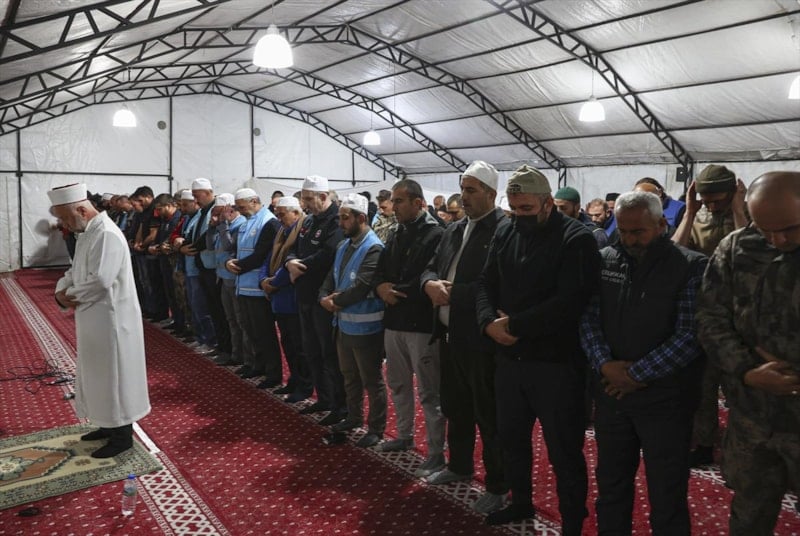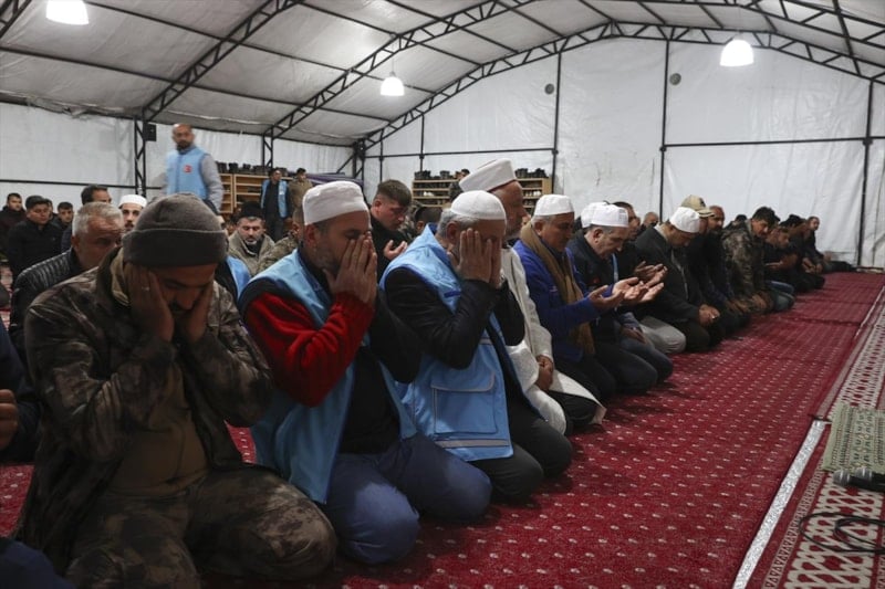 Kılınan namazın ardından depremin etkilerinin hafiflemesi ve yaşamını yitirenler için dua edildi.