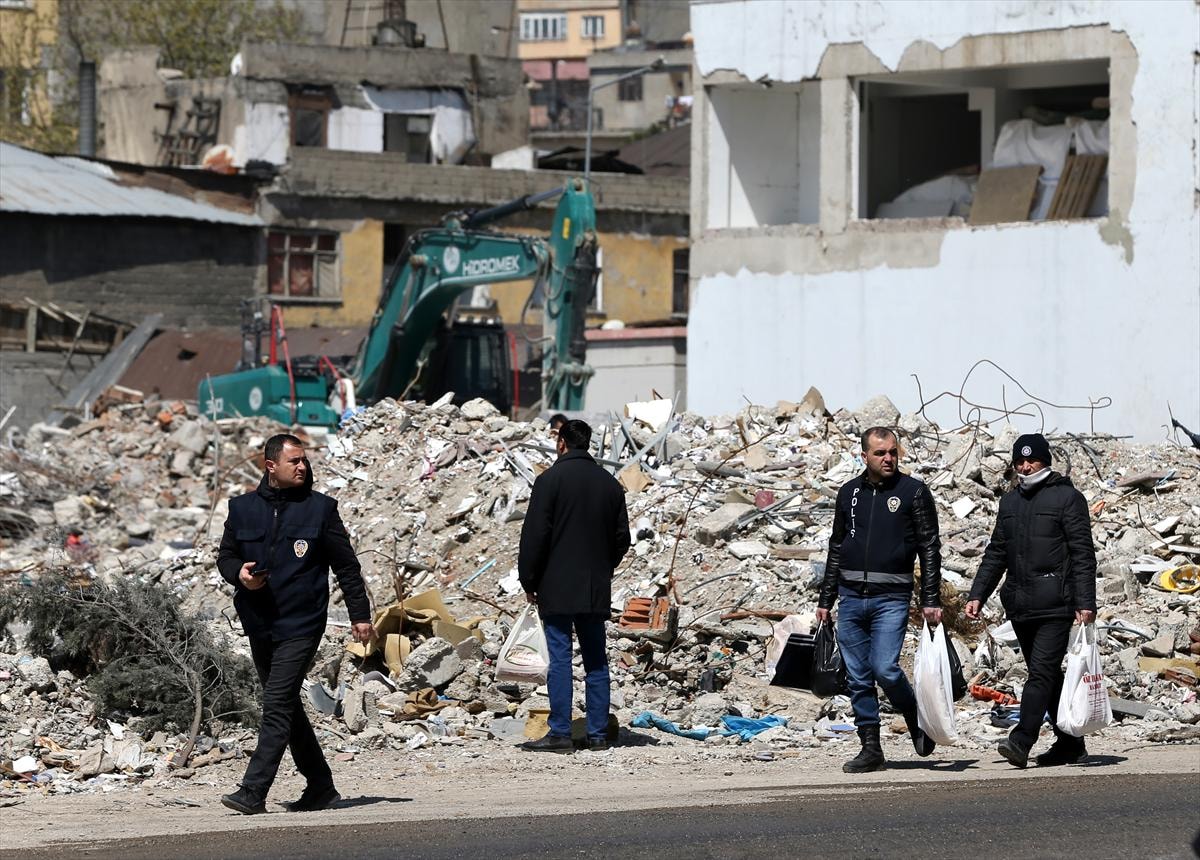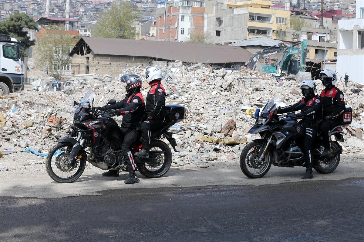 Kahramanmaraş'ta yıkımların en çok yaşandığı Trabzon Caddesi ve Azerbaycan Bulvarı'nda enkaz kaldırma çalışmalarında polisler de görev alıyor.