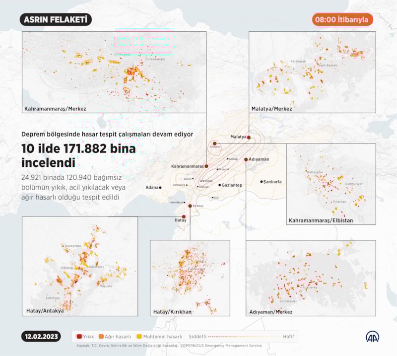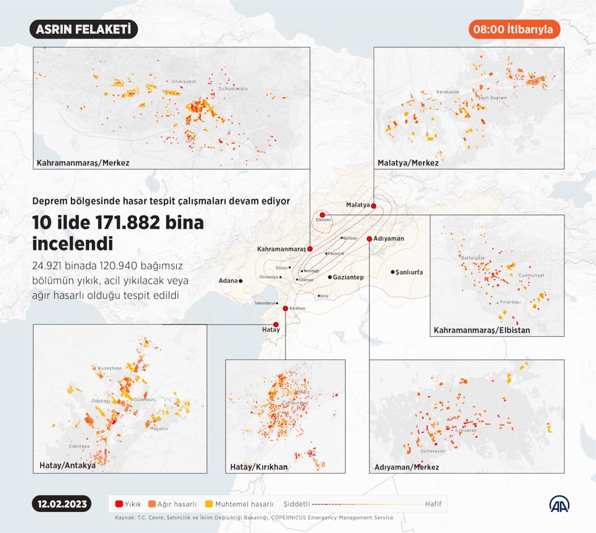 Şu ana kadar yapılan çalışmalarda; 10 ilde 171 bin 882 bina incelendi.