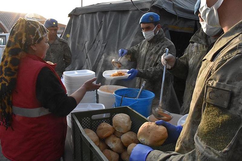 Büyük deprem felaketinden hemen sonra kışlasından çıkıp halkın yanında olan Mehmetçik, kurulan çadır ve konteyner kentlerde de halkın traş ihtiyacından gıda ve yakacak odununu kırmaya kadar her ihtiyacını karşılıyor.