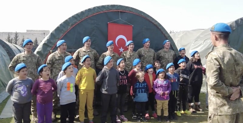 Mehmetçik deprem bölgelerinde çocuklarla zaman geçirmeye devam ediyor, Milli Savunma Bakanlığı'nın sosyal medya hesabında paylaşılan görüntülerde Komanda ekiplerinin çocuklarla Komando Andı okuduğu anlar paylaşıldı.