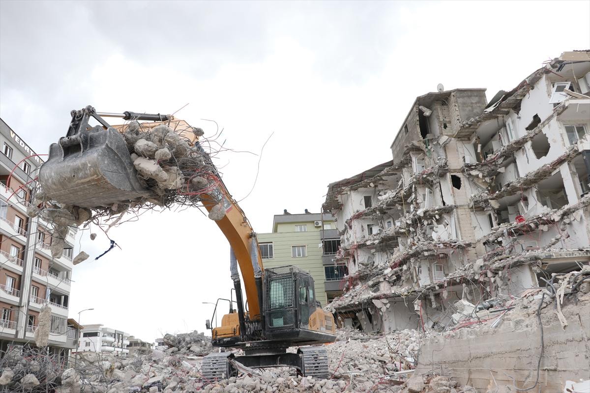 Depremde yıkılan binaların yanı sıra acil yıkım kararı alınan yapılarda da çalışmalar sürüyor.
