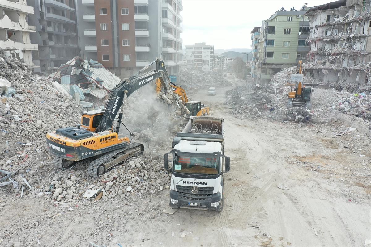 Söz konusu ilçelerde acil yıkım kararı alınmış ve yıkık binaların enkazlarının kaldırılması faaliyetlerinde bulunuyoruz. Ekip ve makine oranımızı peyderpey artırıyoruz, binaların enkazlarını döküm alanlarına taşınmasını sağlıyoruz. Depremden bu zamana kadar 300 bin ton enkazın döküm alanına transferi sağlandı. Acil yıkım kararı alınmış olan binaların yüzde 70 oranında yıkımları gerçekleştirildi, yüzde 30'unun enkazı döküm alanına taşındı.