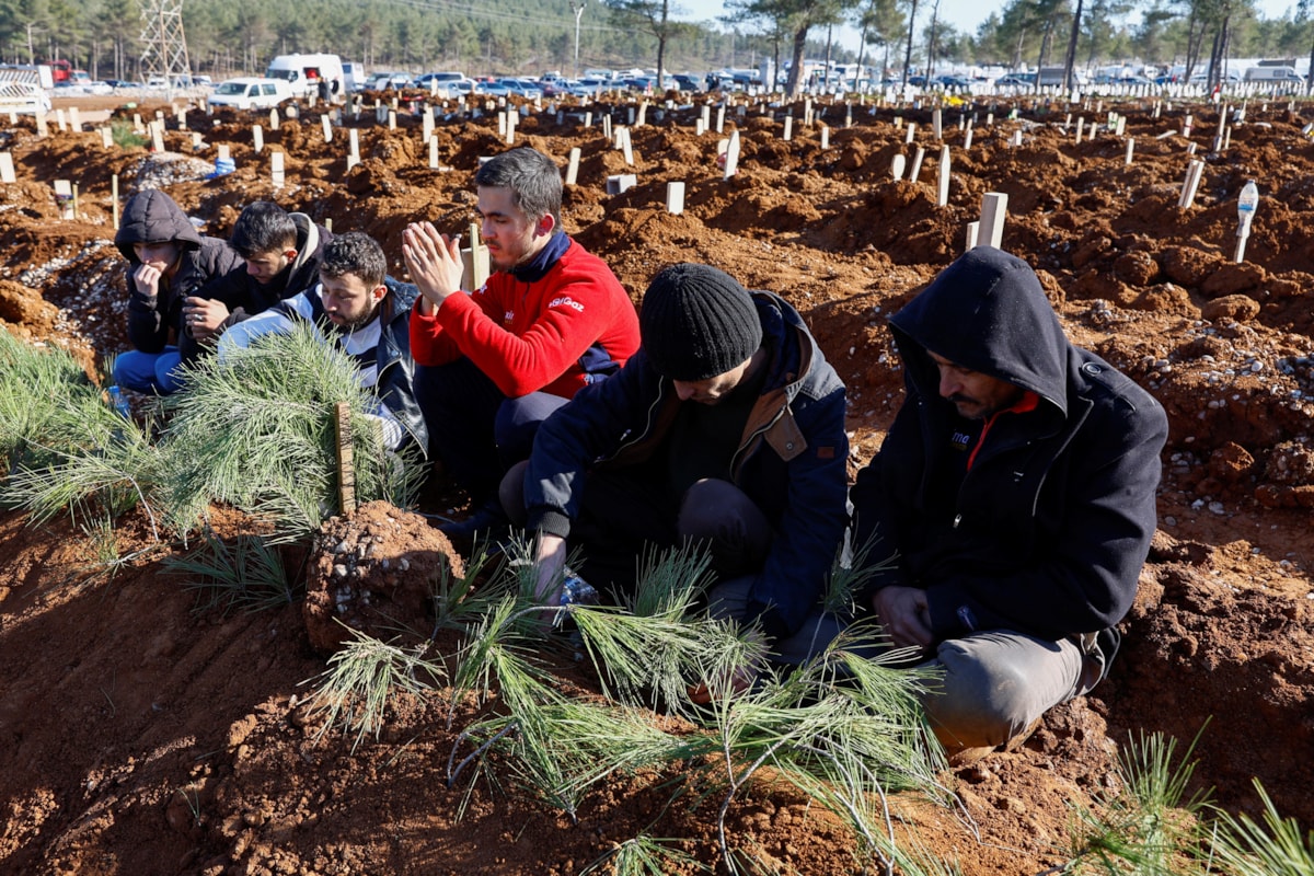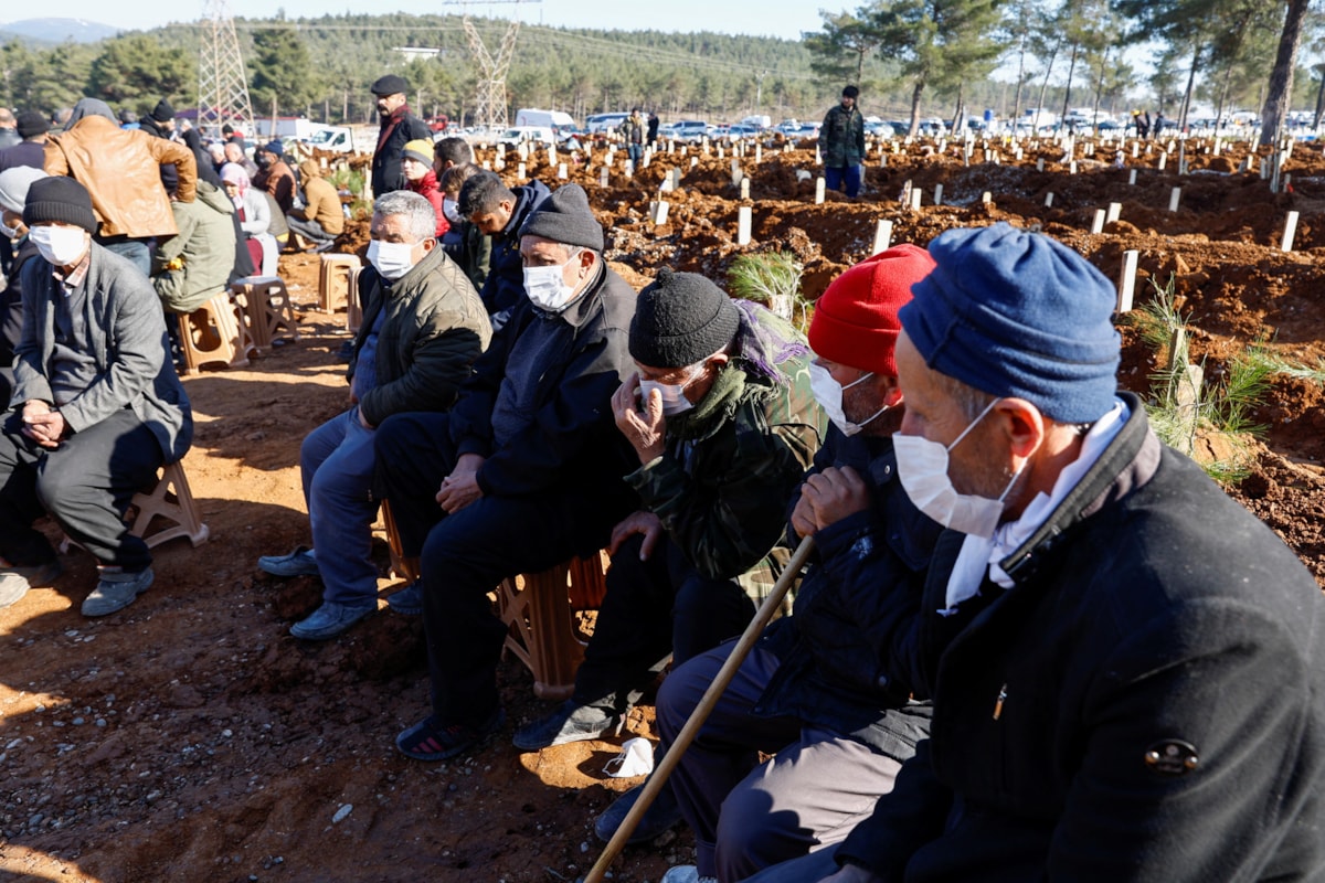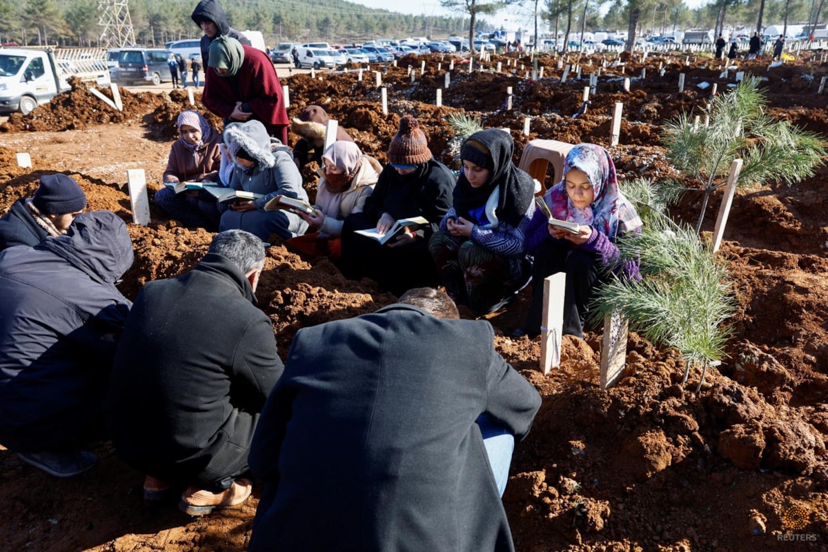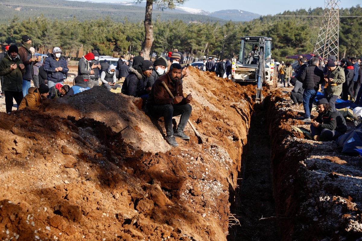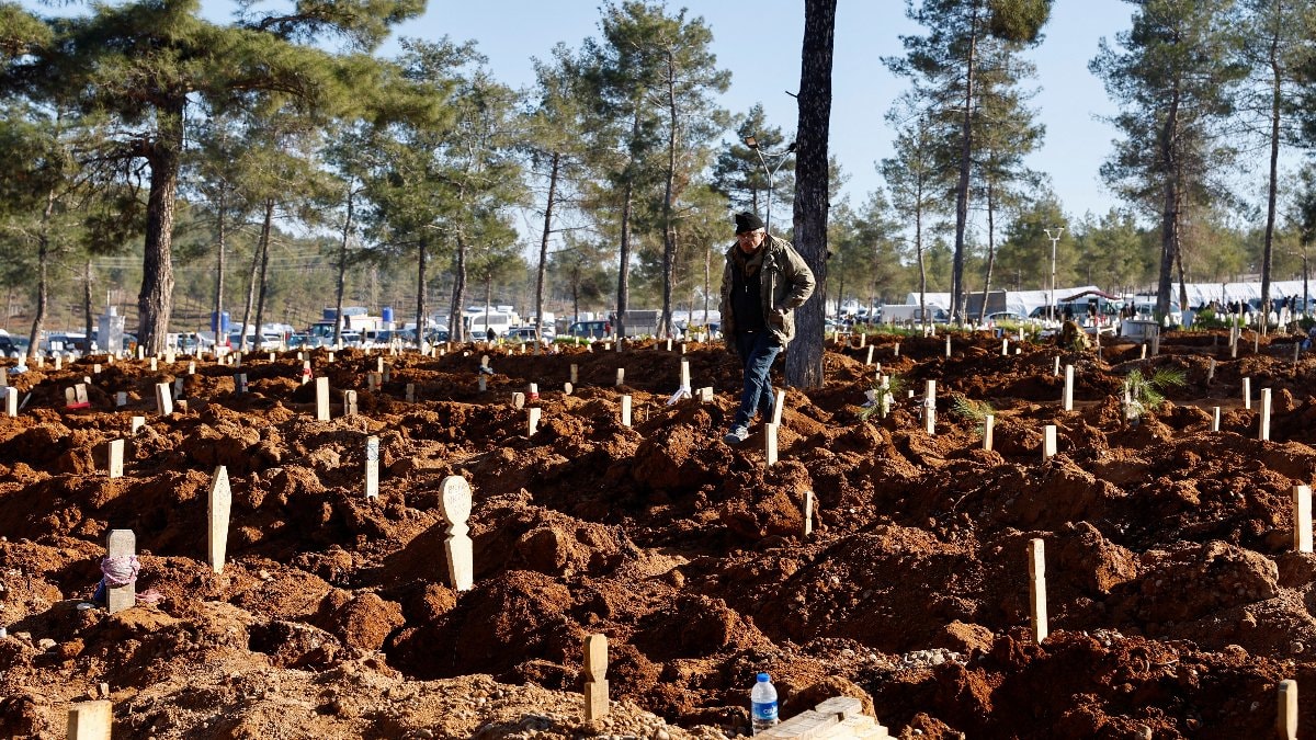 Kahramanmaraş'ta belirlenen alanlarda kazılan mezarlara depremzedeler yakınlarını defnediyor.