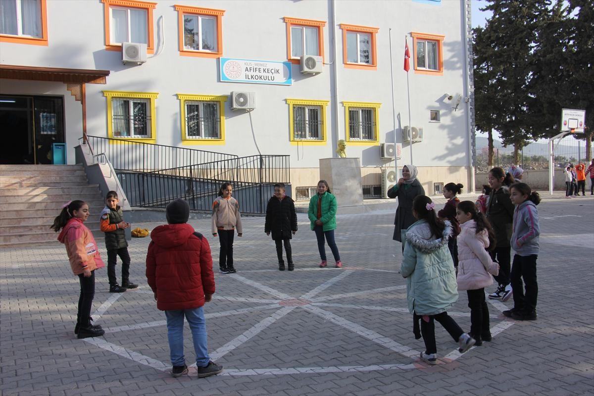 Kent merkezindeki Afife Keçik İlkokulu'nda öğrenciler, öğretmenleri eşliğinde oyunlar oynadı, arkadaşlarıyla bahçede dolaştı.