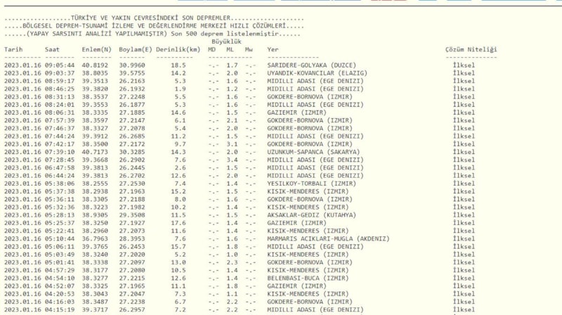İşte Kandilli Rasathanesi'nin 21 Ocak 2023 deprem verileri: