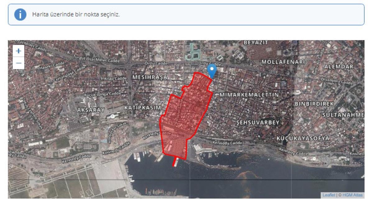 Buradaki belirtilen bölümlere bilgilerinizi girdiğinizde de kendi ikamet ettiğiniz alanın haritası belirginleşiyor.