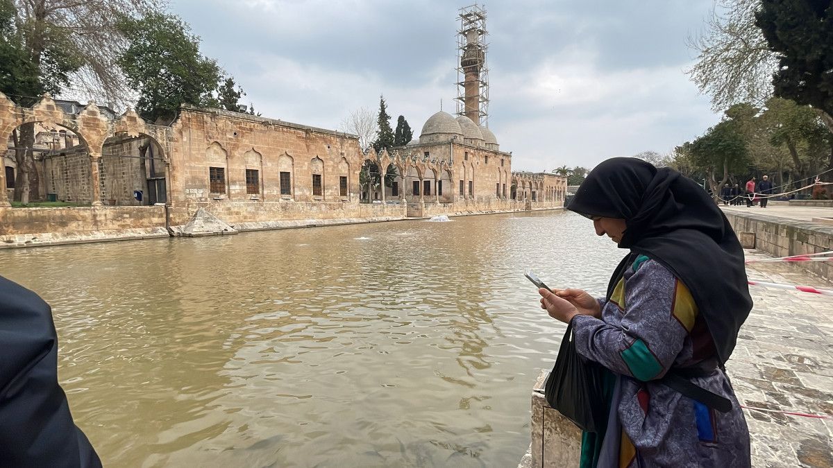 Kahramanmaraş merkezli depremlerin etkilediği Şanlıurfa'nın simgesi olan Balıklıgöl'ün suyunun rengi çamura döndü ve bazı noktalarında hasar oluştu.