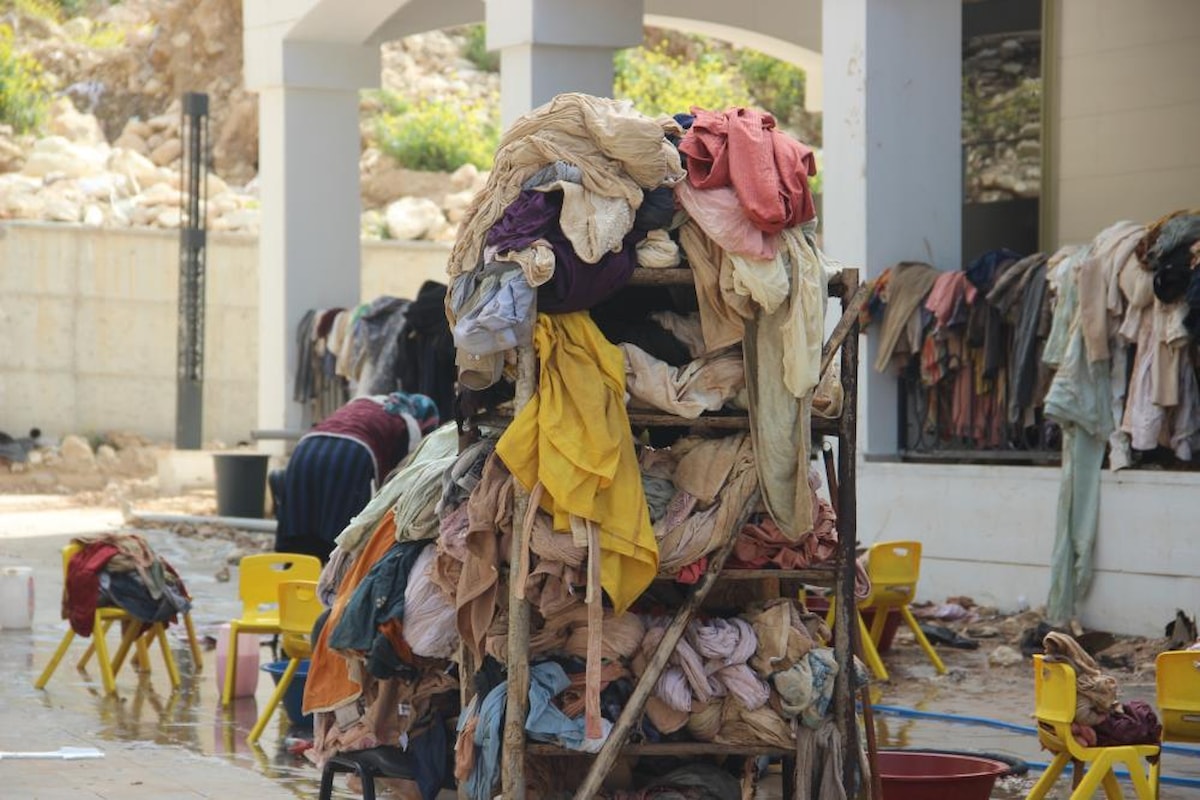 Kadınların titizlikle temizledikleri giyim malzemeleri daha sonra sanayi tipi çamaşır makinelerinde yıkanarak dezenfekte ediliyor.