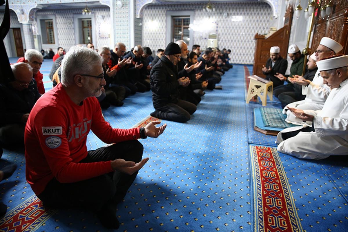 Sabah namazının kılınmasının ardından Kur'an-ı Kerim okundu, ilahiler söylendi, İl Müftüsü Ali Çakmak tarafından depremde yaşamını yitirenler için dua edildi.