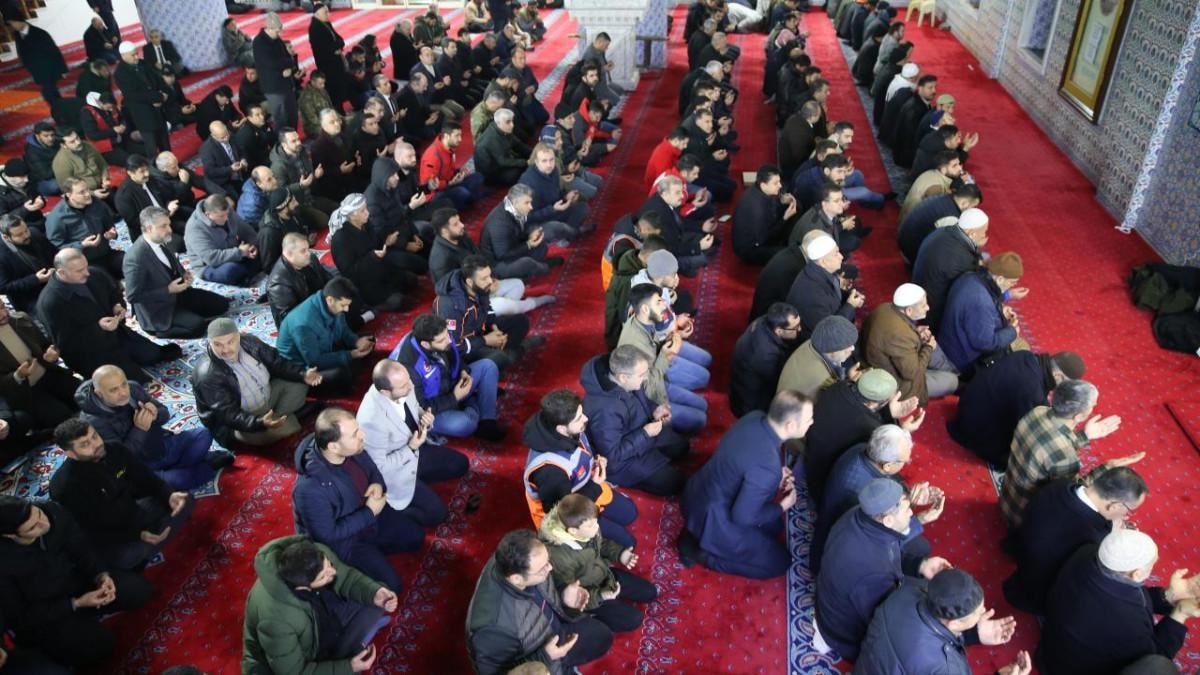 Namazdan sonra depremde yaşamını yitirenler için Kur'an-ı Kerim okundu, dua edildi.