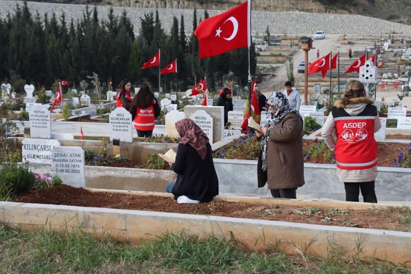 6 Şubat 2023'teki depremlerde yakınlarını kaybedenler mezarlık ziyaretinde bulundu. Duygu dolu anların yaşandığı mezarlıkta, kabirlere Türk bayrağı bırakıldı. Hatay'da ise hayatını kaybeden çocukları anmak için bir araya gelen grup, mezarlara oyuncaklar bırakıp, balon bağladı.
