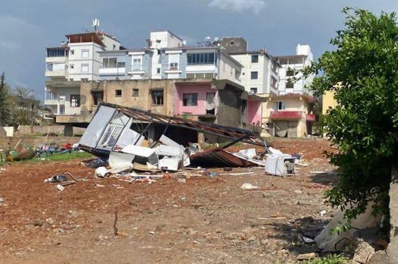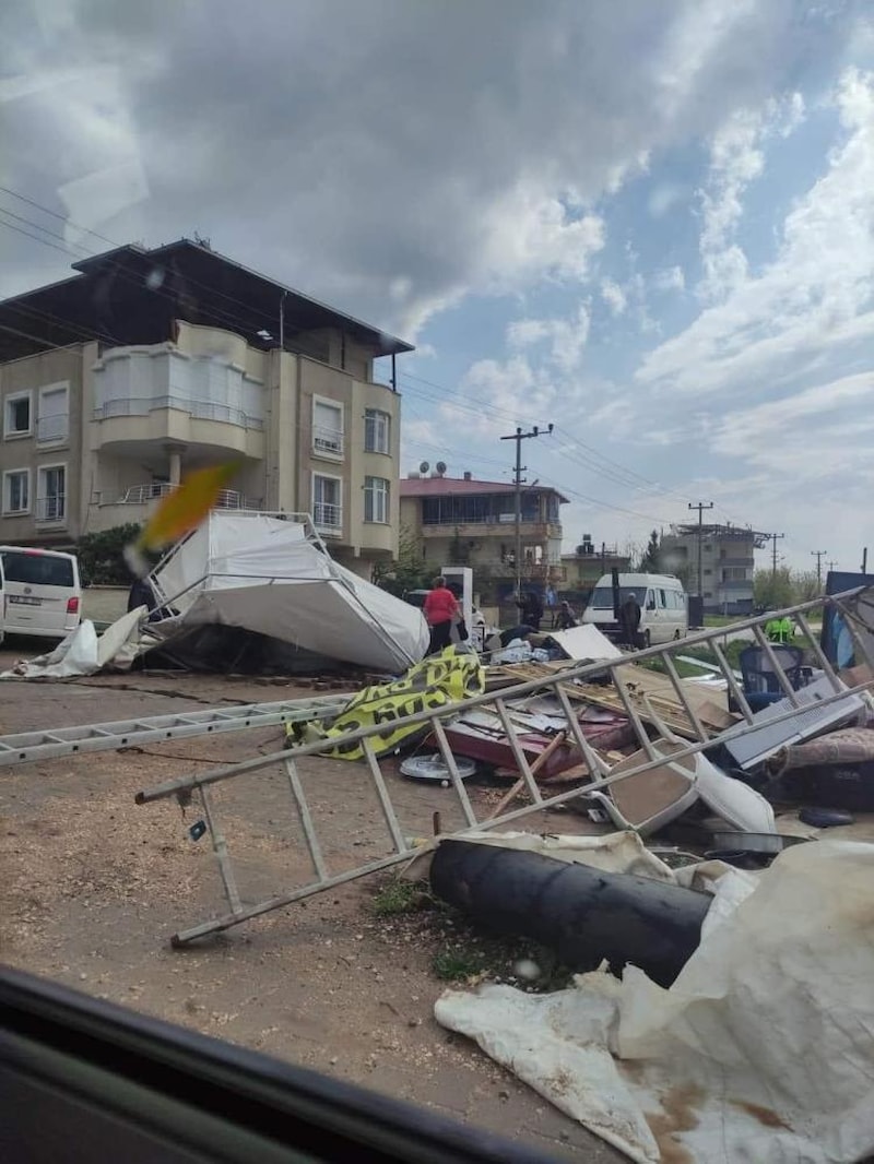 Afetin merkezi Kahramanmaraş'ın Pazarcık ilçesinde fırtına sonrası hortum meydana geldi. Depremzedelerin kaldığı çadırlar yerinden çıkarak savruldu. Hasarlı binaların çatılarından savrulan parçalar nedeniyle ölü ve yaralananlar oldu.